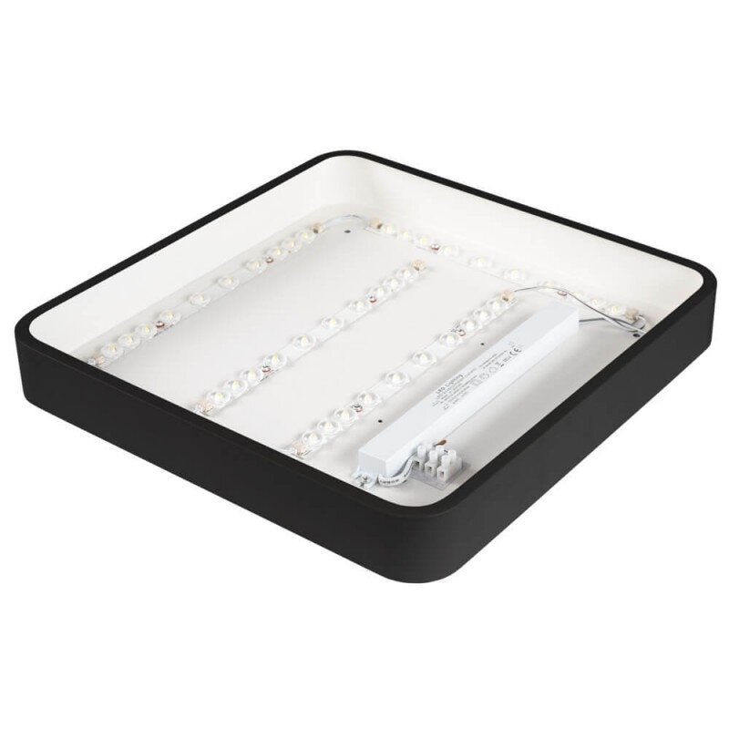 LED lubų šviestuvas, 36W, juodas, kvadratinis, šilta balta šviesa