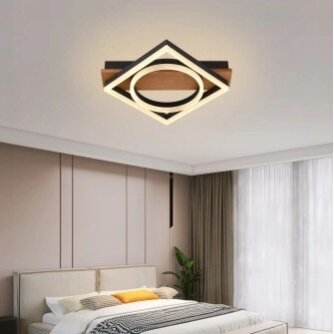 LED lubų šviestuvas, 44W, juodas/medžio, CCT šviesa, nuotolinis valdymas